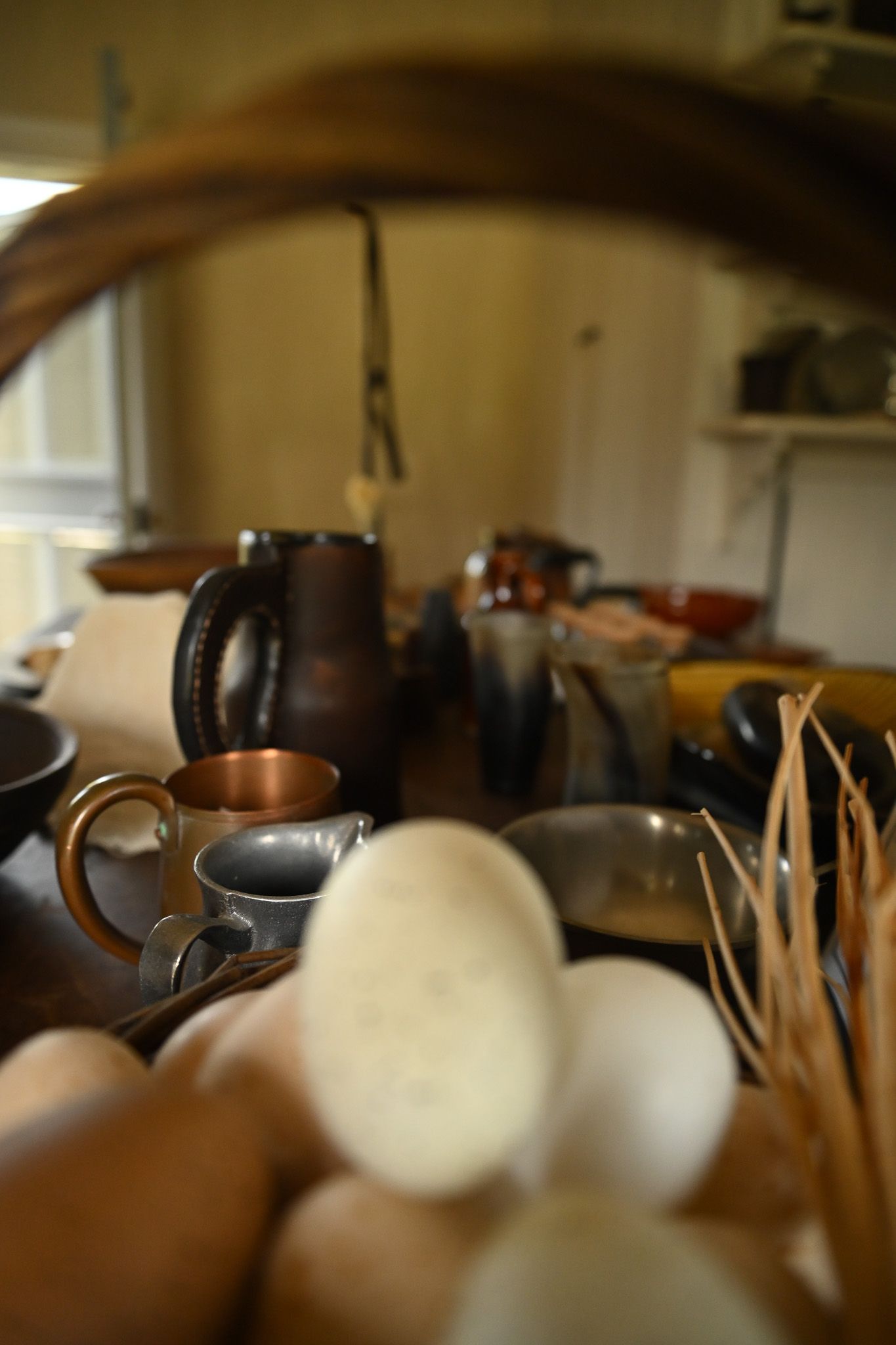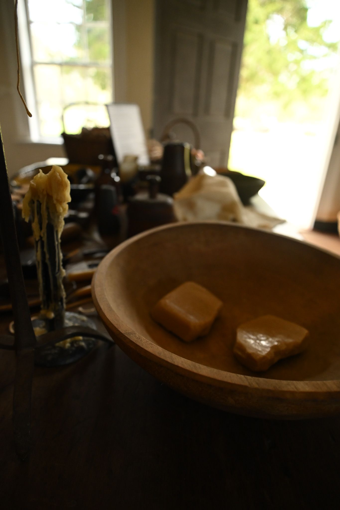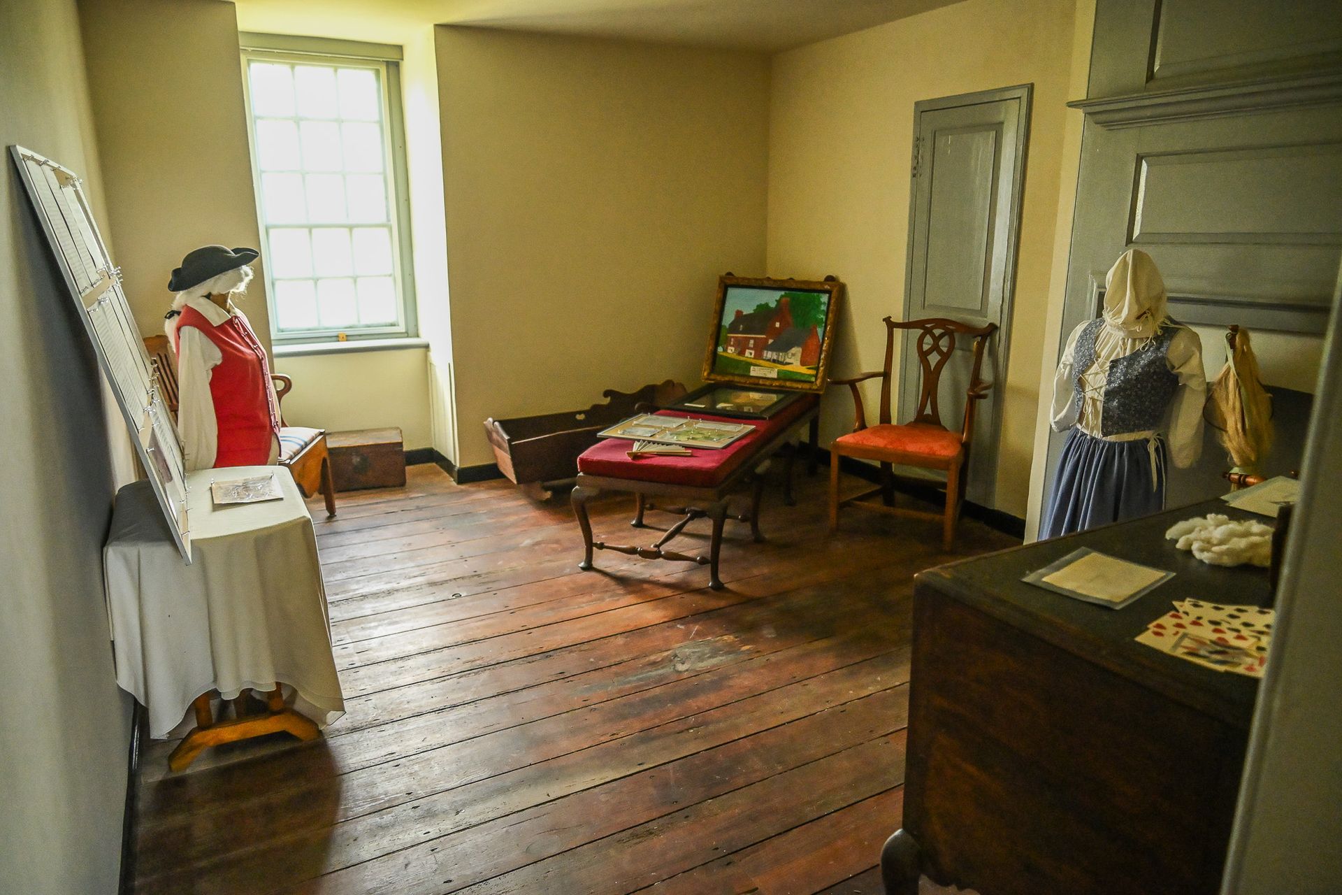 The building has been fully restored to its eighteenth-century appearance. The restoration is based on extensive and ongoing research. The attached 1786 kitchen was reconstructed on its original foundation. Furnishings are based on three eighteenth-century probate inventories taken on the plantation.